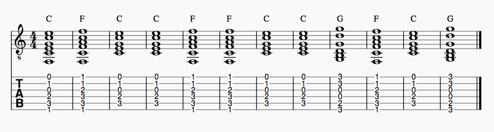 Аккорды в До мажоре: С-F-C-C-F-F-C-C-G-F-C-G