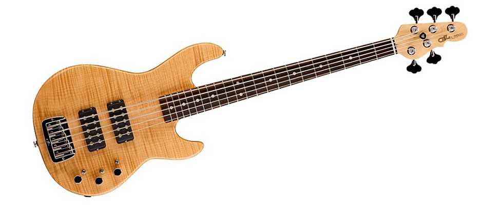 К пятиструнным бас-гитарам добавляют дополнительную струну, которую настраивают в B (Си), тем самым наделяя инструмент более широким диапазоном. Гриф пятиструнного баса гораздо шире по сравнению с четырёхструнной, и поэтому на нём будет сложней учиться. Пятиструнные бас-гитары популярны в таких жанрах как: хард-рок, метал, фьюжн и джаз.