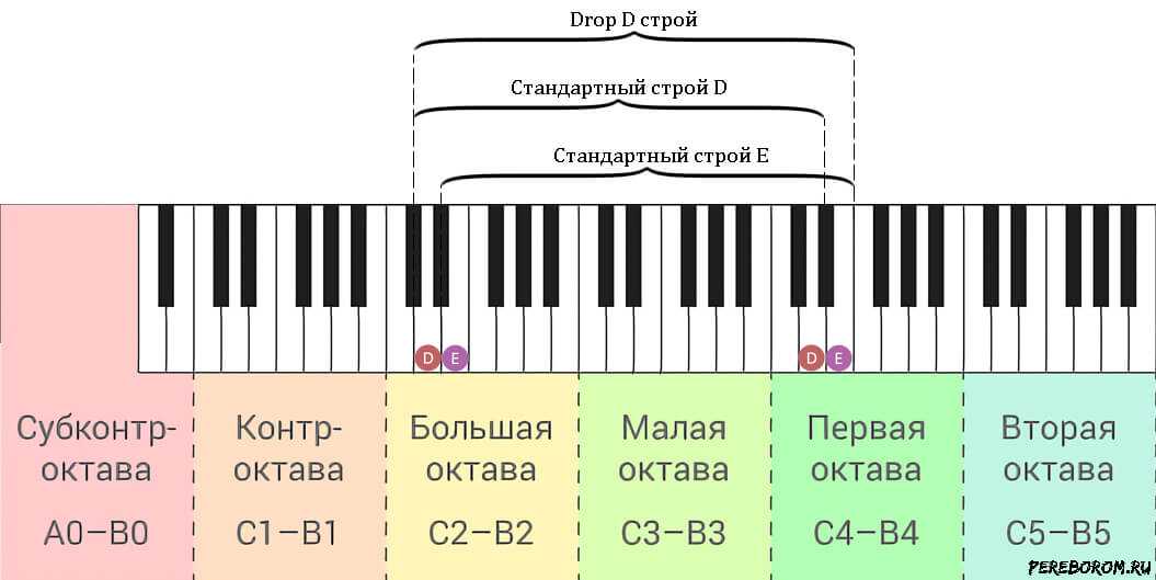 Помимо очевидного преимущества в виде более удобной позиции квинт-аккордов, Drop-строи позволяют расширить гитарный диапазон. Например, в классическом Drop D он начинается не с Ми, а с Ре большой октавы. При этом вы не теряете остальные ноты, как если бы опускали гитару полностью на тон. Смещение происходит точно так же, как и в Standart-настройке – диапазон смещается на такое же количество тонов, на какое вы опускаете струны.