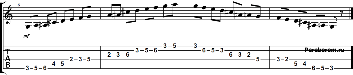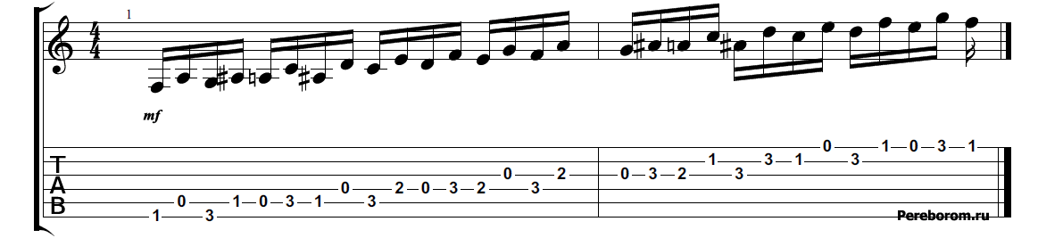 Ниже представлен большой комплекс упражнений, который позволит вам отработать гаммы, а также развить скорость рук и беглость пальцев. Все упражнения включают в себя изображения табулатур и аудиодорожки, где вы сможете прослушать то, как они звучат, и скорректировать свою игру в соответствии с ними. Старайтесь после отработки упражнений отдельно играть их подряд – поскольку по своей сути они являются продолжением друг друга.