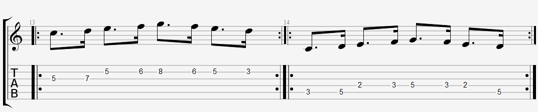 Рекомендации здесь, в целом, точно такие же. Запоминайте лады и тоники, а также помните, что все фигуры являются продолжением друг друга, включая те, которые следуют после 12-го лада через октаву. Следите за аппликатурой и пальцами, учитывая появившийся дополнительный лад.
