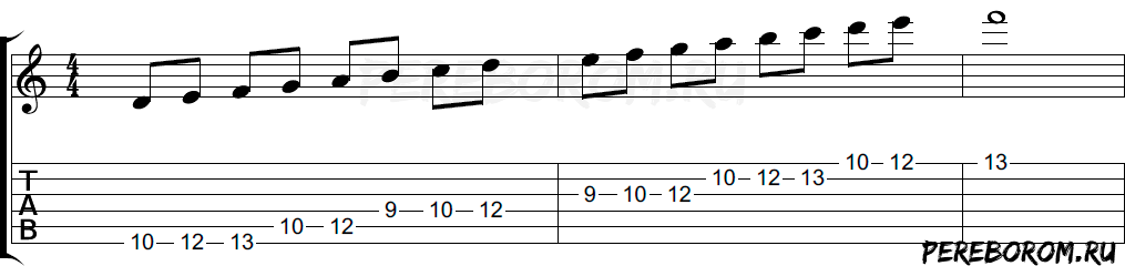 Для примера мы используем гамму до-мажор через бокс на десятом ладу: