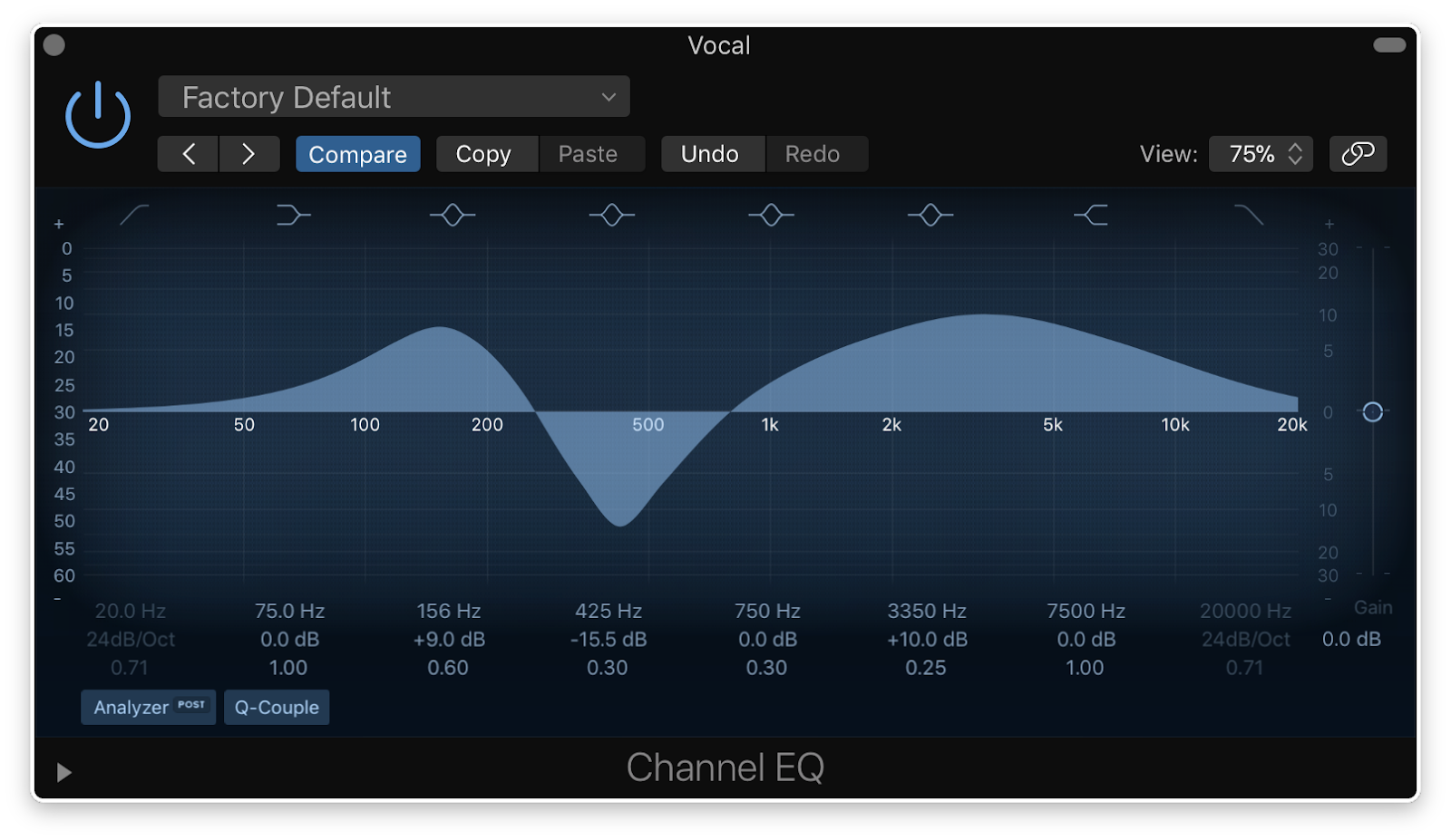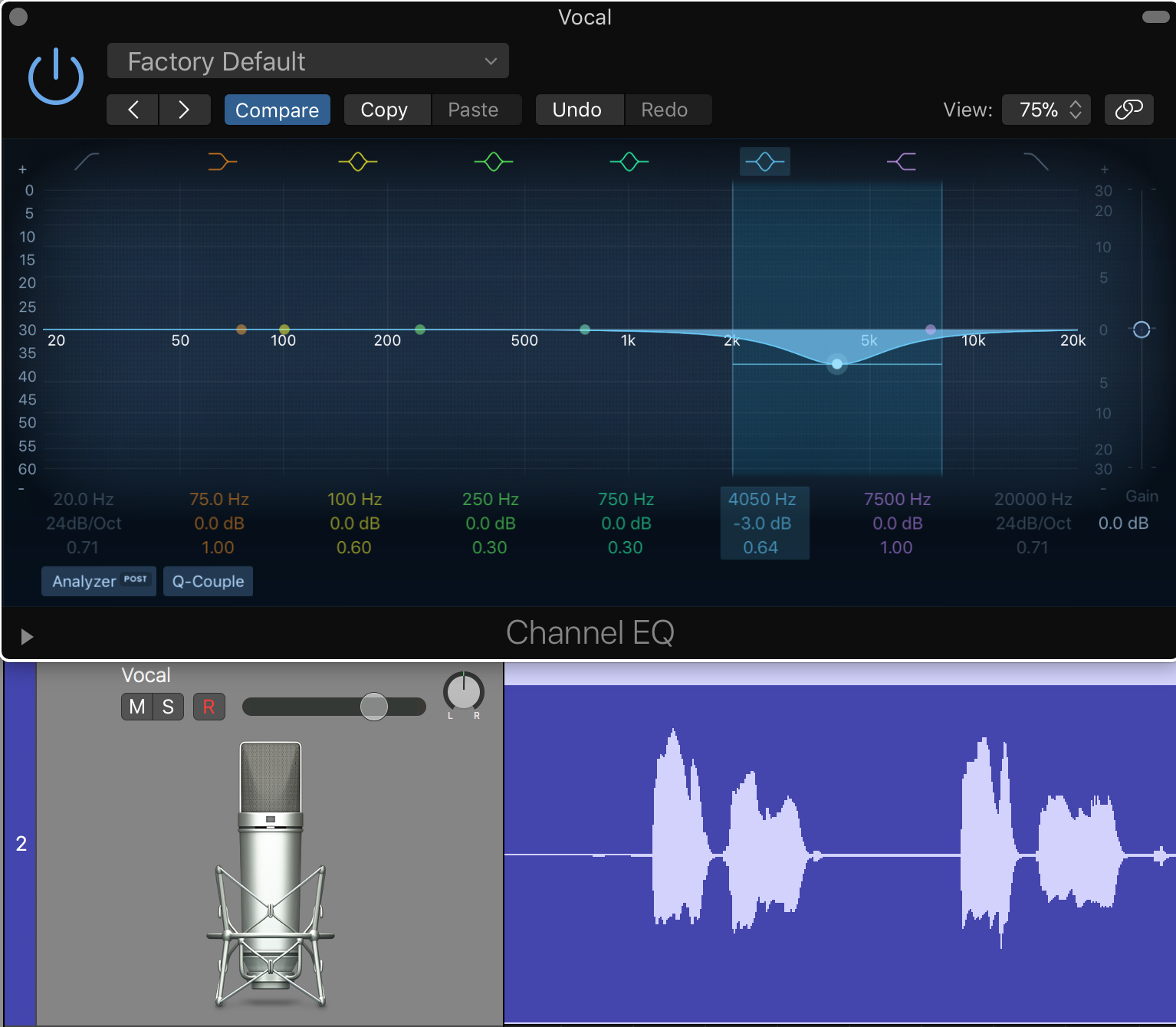 Это может значительно ухудшить звучание вокала. И как только он начинает звучать хуже, очень легко попасть в замкнутый круг, когда вы эквализируете все больше и больше, чтобы “исправить” звук, тогда как проблема кроется в самом факте эквализации.