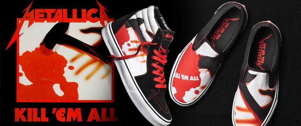 Чтобы рассказать про все песни, многие их которых наверняка и так знакомы, не хватит одной статьи. На сегодняшний день Metallica выпустила 10 альбомов, последний из которых «Hardwired… to Self-Destruct» моментально занял первые строчки в чарте Billboard 200. Он вышел на собственной лейбле группы под названием Blackened Recordings в 2016 году. В честь нового витка группы Металлика уже не в первый раз объединилась с брендом Vans для создания одежды и обуви с логотипом альбома. В релиз вошли слипоны, высокие кеды Sk8-Hi Reissue, футболка и кепка.
