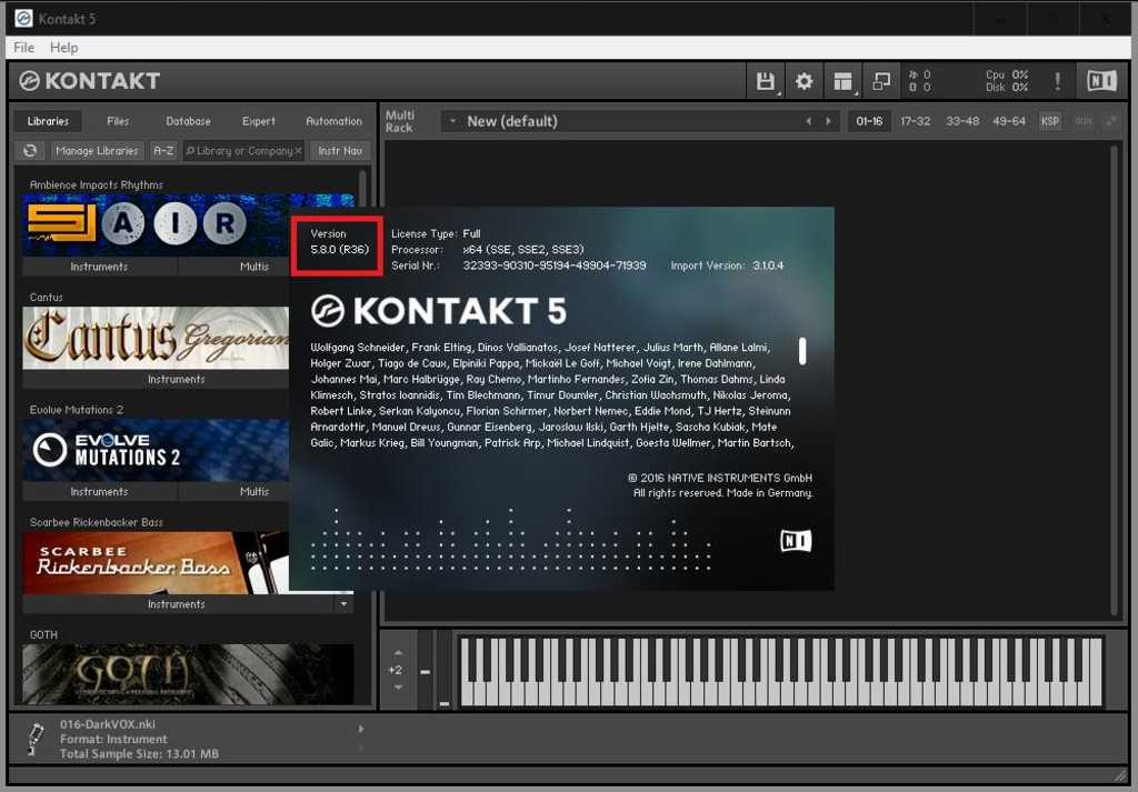 Что касается загрузки инструментов, изначально определенную библиотеку для Kontakt 5 в список можно не добавлять вообще.