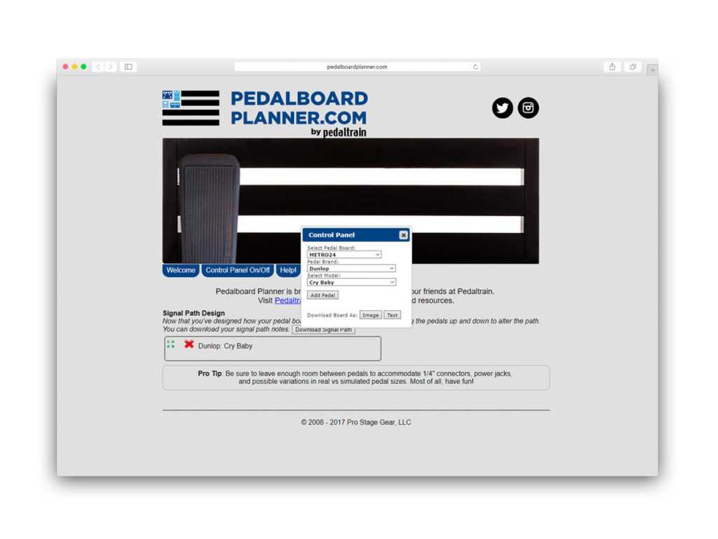 Если такой способ планирования педалборда не подойдет, можно воспользоваться сервисом Pedalboard Planner. Сервис хранит данные о размерах большинства существующих педалей эффектов, а также дает рекомендации о том, как собрать педалборд на основе заданных условий.