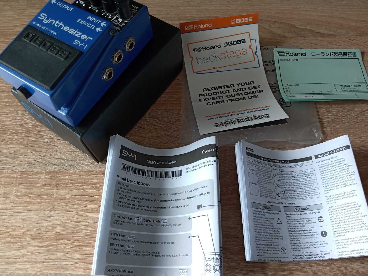 Педаль поставляется в картонной коробке без какой-либо обёртки или заводской плёнки. Несмотря на простоту, SY-1 надёжно зафиксирована в корпусе, не катается и не летает по коробке — во время доставки устройство останется в целости и сохранности. Картон стилизован под чёрную кожу. Выглядит необычно. В центре — крупный логотип BOSS.
