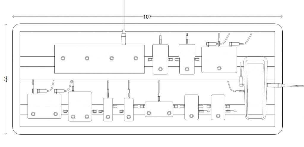 Планирование педалборда лучше начать с определения его размеров. Сделать это навскидку довольно трудно — лучше нарисовать схему будущего аксессуара, чтобы наглядно понять, как собрать педалборд.