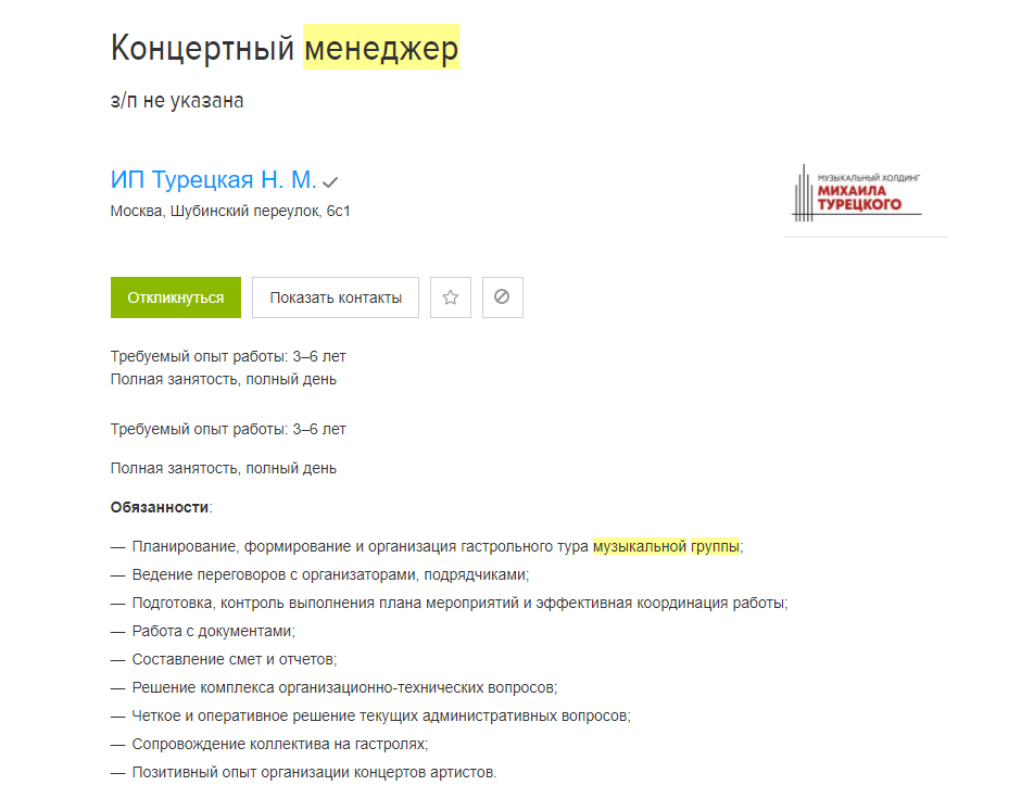 У начинающих артистов всю работу обычно делает один человек. А на успешных музыкантов часто трудится команда, где у каждого своя роль. Например, у них есть концертный директор, SMM-специалист, на аутсорсе юрист и бухгалтер. Если музыкант работает с лейблом, его личный менеджер может делить задачи с сотрудниками лейбла.