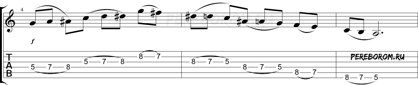 В этом упражнении от вас потребуется сыграть паттерн, в котором содержатся хаммер-оны и пулл-оффы.