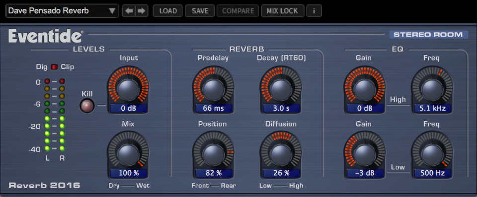 Hi-Fre. Damp. – для регулировки уровня высокочастотного отклика. Колебания высокой частоты при переотражении затухают значительно быстрее, регулируя его, то есть мы можем более гибко управлять параметрами реверберации.