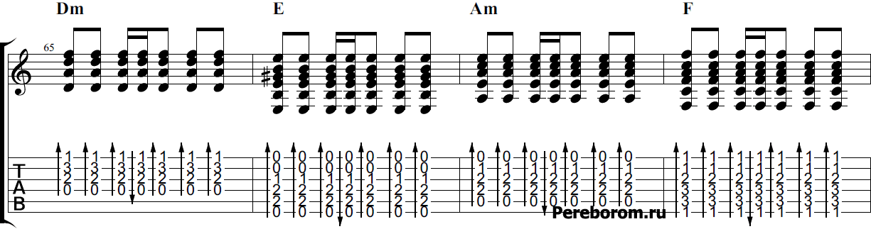 ритмах под гитару ничем не отличается от остальных – вы играете восьмыми нотами вверх и вниз, однако имеется несколько нюансов.
