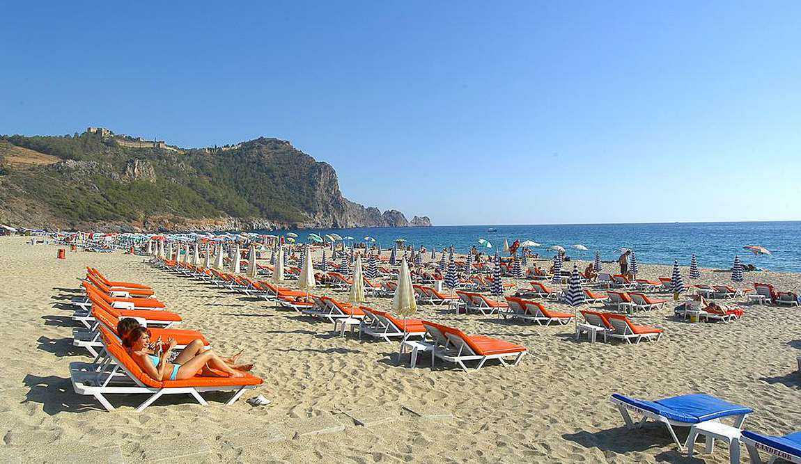 Пляжи в Аланье – муниципальные, они тянутся на много километров по обе стороны от горы – сплошной полосой, не разбиваясь на кусочки при-отельных пляжей. Вход на пляжи бесплатный. Аренда лежака – 2 лиры (примерно 40 рублей). Но многие отдыхающие лежат на песке на своих полотенцах. За пользование душем и кабинками для переодевания денег не берут.