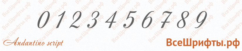 Предварительный просмотр шрифта «Andantino script» с цифрами (0 1 2 3 4 5 6 7 8 9).