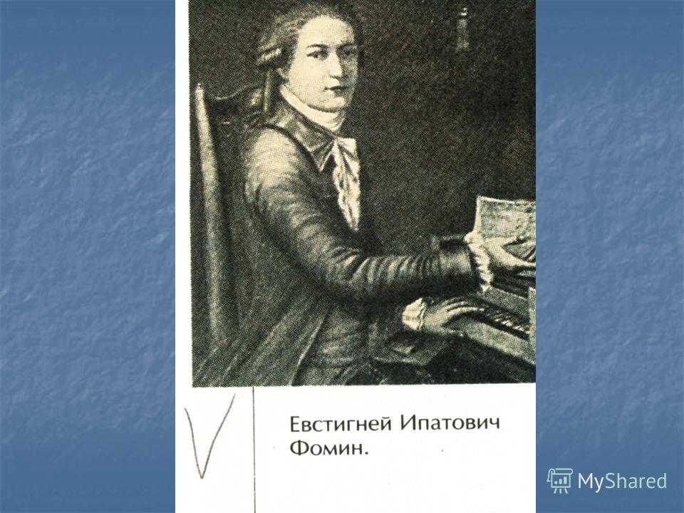 Евстигней Ипатович Фомин ( ) – автор опер «Ямщики на подставе» и «Орфей». Евстигней Ипатович Фомин ( ) – автор опер «Ямщики на подставе» и «Орфей».