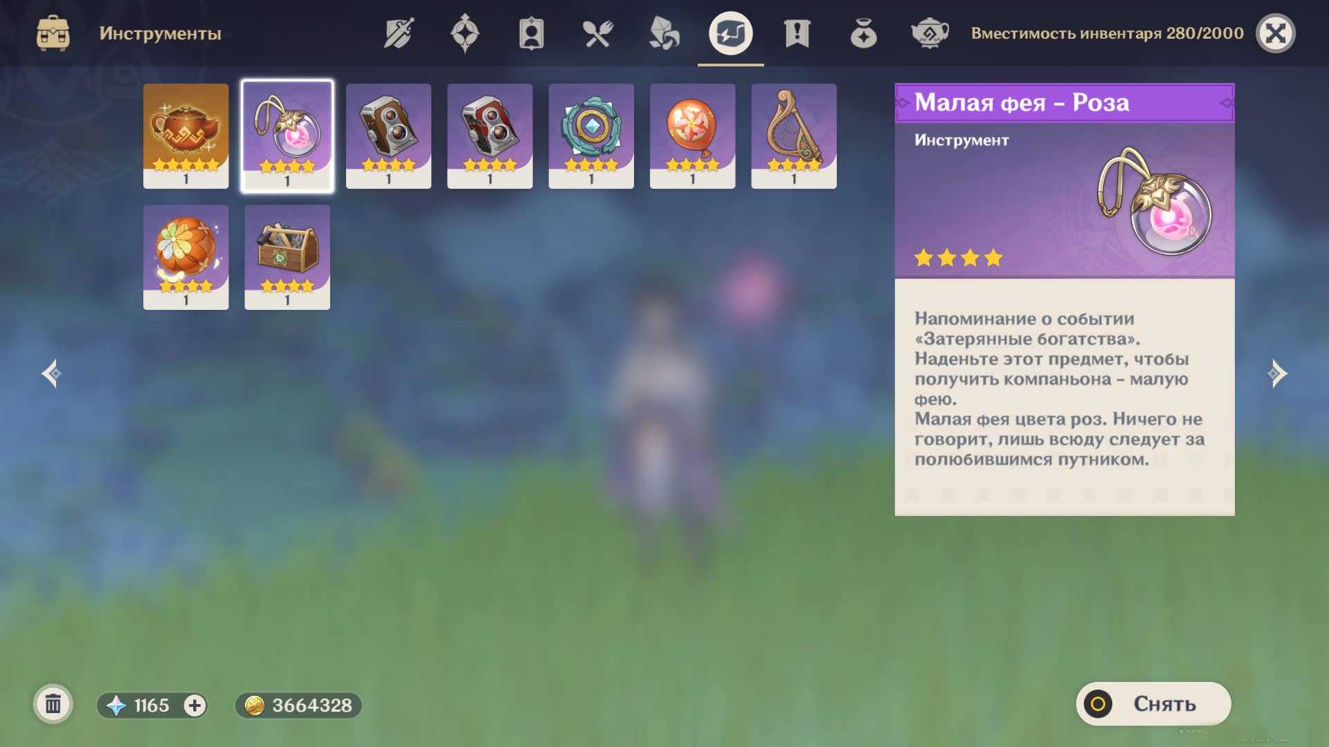 Чтобы призвать фею, ее нужно надеть в инвентаре