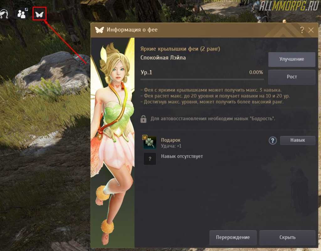 взаимодействие с феей – прокачка, настройка применения навыков, перерождение,