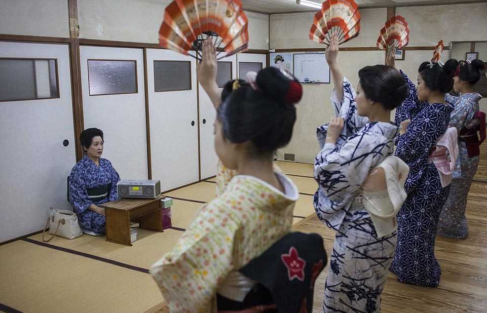 - Минари (что переводится как «смотри и учись»). Девушки получают возможность принимать участие в светских мероприятиях, сопровождая старших «сестер». Им запрещается проявлять инициативу, единственная задача – наблюдение за учителем. В конце этапа нужно сдать экзамен – станцевать древний танец кёмай.