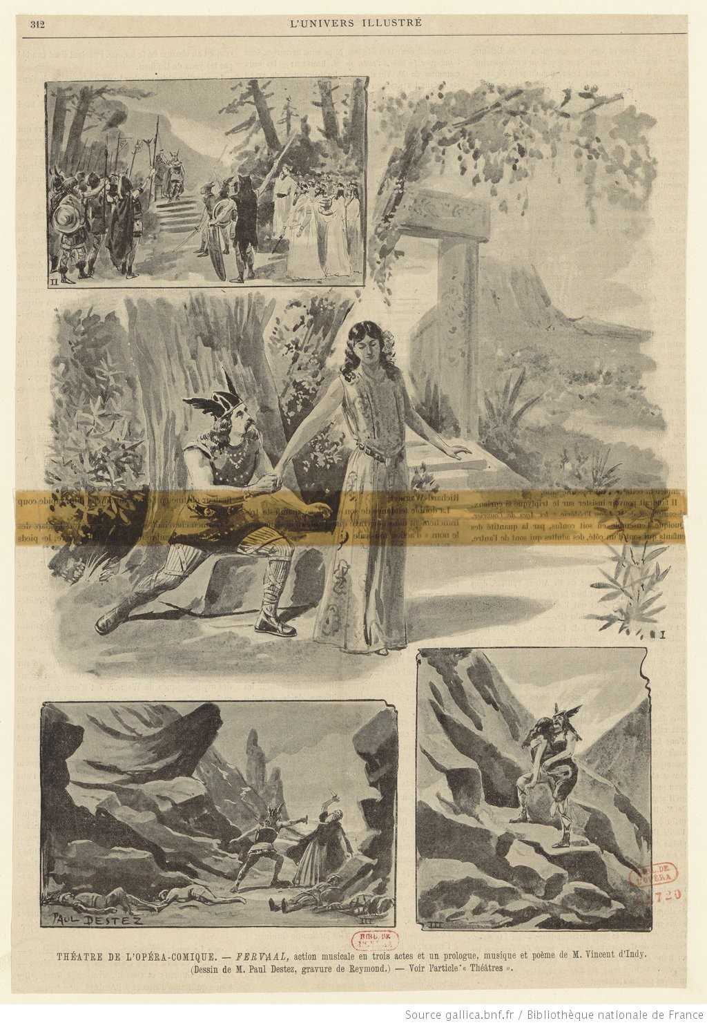 - Act III finale: Fervaal’s mystical exaltation in the middle of a concert of invisible voices gave the last scene a noble grandeur (Le Flem). “Nothing, since Berlioz in France, and Wagner in Germany, is comparable to the last scene, as much by its power as by the nobility of its expression,” Kufferath wrote in Rivista Musicale Italiana. Bruneau agreed the last scene seemed superior to the rest; it would be simply sublime if Wagner hadn’t directly inspired d’Indy.