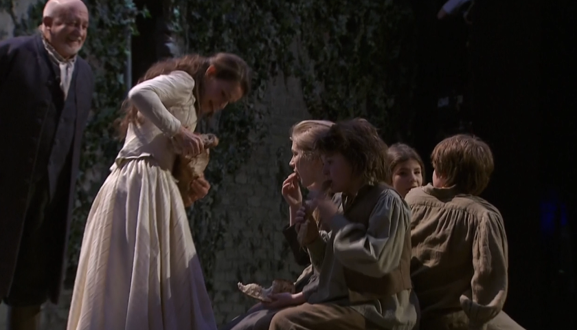 Появляется Шарлотта (меццо-сопрано Софи Кош — Sophie Koch). Прежде чем она поедет на бал, она должна накормить своих младших братьев и сестёр. Постановщик Бенуа Жако (Beno?t Jacquot) не придумал ничего лучше, как вручить ей огромный круглый хлеб, от которого она руками отламывает куски и раздаёт их младшим.