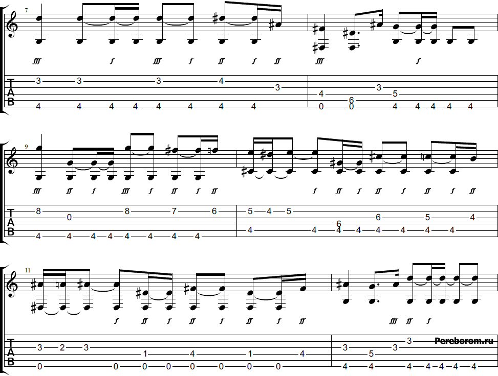 Начнем с самой простой аранжировки, табы и ноты на которую вы можете скачать с этой страницы.