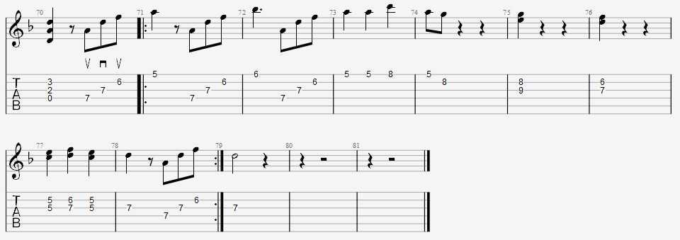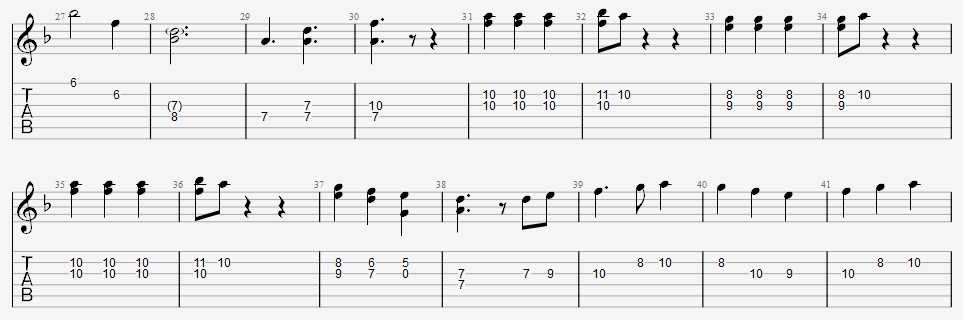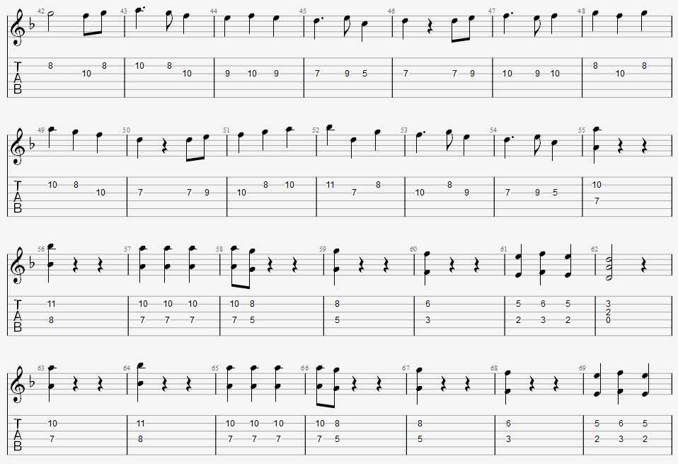 Начнем с самой простой аранжировки, табы и ноты на которую вы можете скачать с этой страницы.