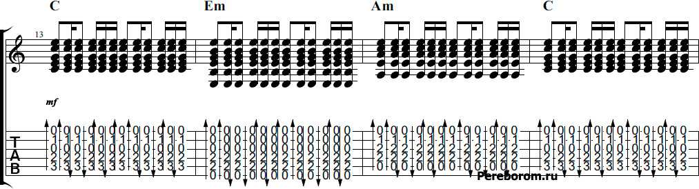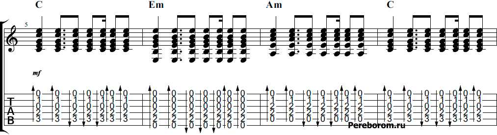 Распространенные схемы арпеджио, доступные новичкам и подходящие для проигрывания многих песен: