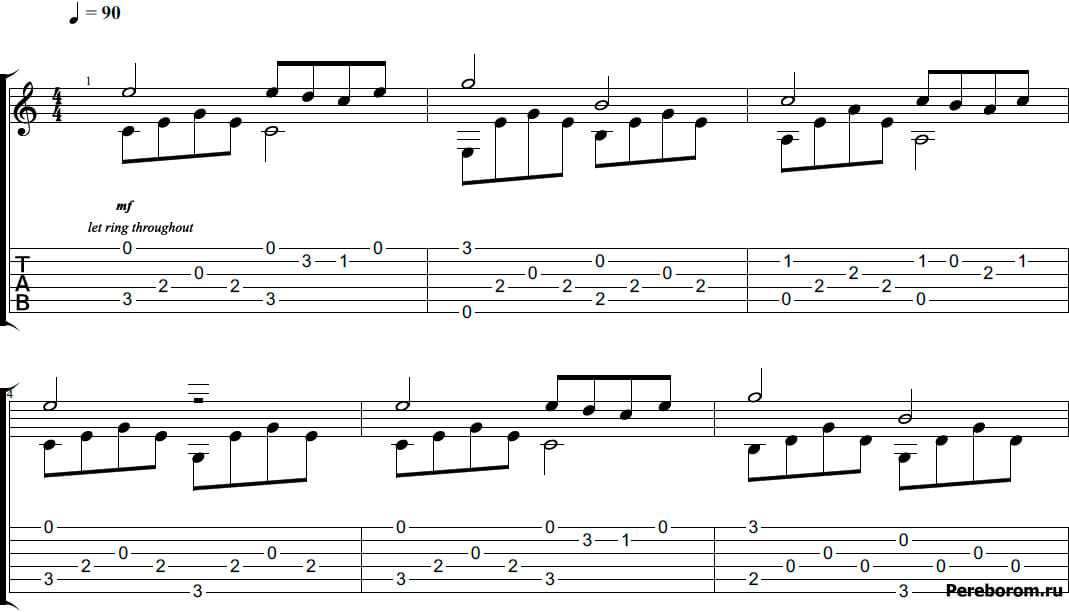 Поскольку эта статья предназначена для новичков, мы показали упрощенную версию мелодии без дополнительных приемов, таких как Pull-off и Slide (выучите эти термины на досуге!).