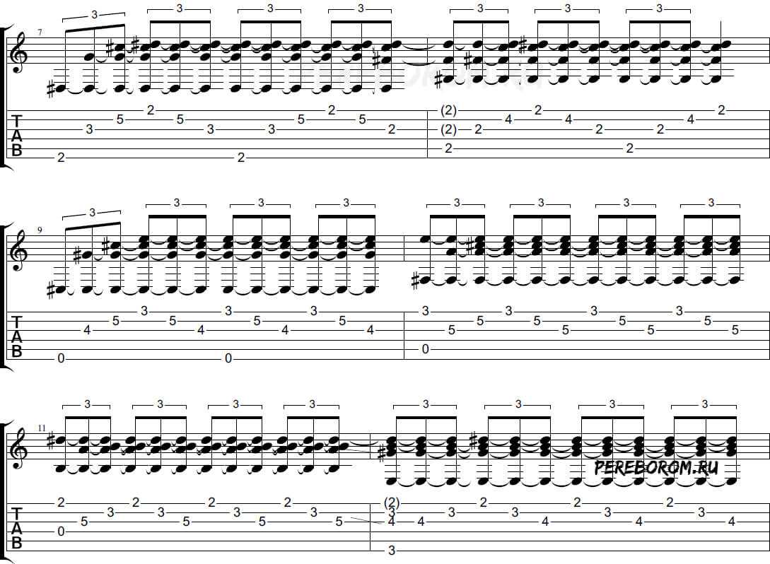 Такты, отмеченные символом «*» – альтернативный вариант транскрипции для одной гитары. В основном это фрагменты, где наложение нескольких гитар.