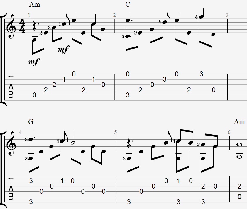 2. Помогают облегчить разбор нот для гитары, прояснить аппликатуру, а также понять, на каком ладу, какую струну зажимать. Все ноты для гитары, которые я делаю, сопровождаются табулатурами, которые пишутся ниже, под нотами.