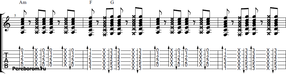 Этот способ играть «Лесник» на гитаре подойдет любителям боя с глушением. Выглядит он следующим образом.
