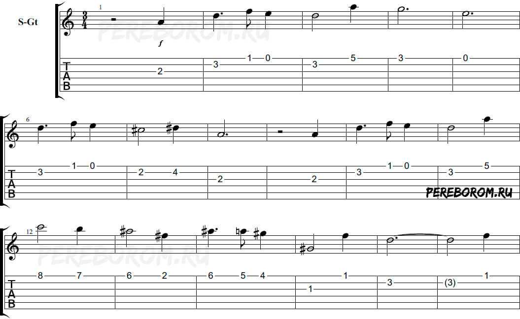 С 25 такта ноту фа# можно извлекать на второй струне 6 лад, чтобы не делать постоянный скачок с 1 на 5 и 8 лады.