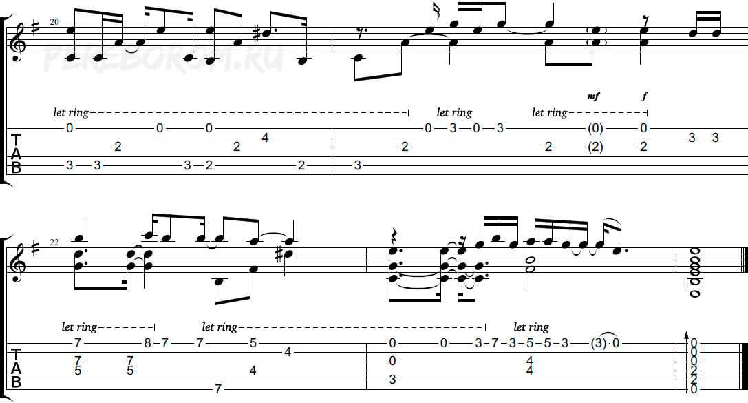 Табулатура игры на гитаре музыки «Ода к радости» — Бетховен (Beethoven 9th Symphony Ode to Joy)..