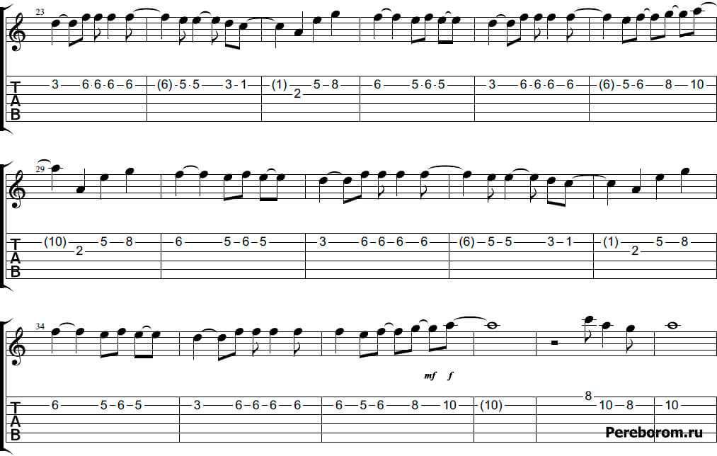 Также стоит обратить внимание на небольшое вступление, которое украсит вашу игру. Данная композиция отлично тренирует ровное чувство ритма (неторопливое чередование четвертных и восьмых), а также плавное «легатное» ведение мелодии